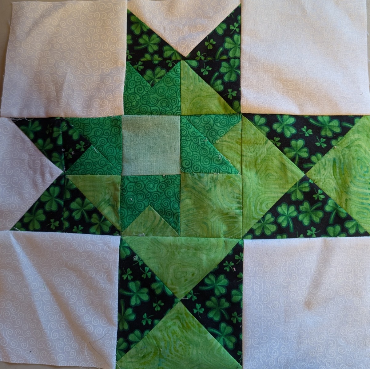 Each month a new pattern is provided to our members. They are invited to bring one or more completed blocks to our next meeting. For each block you bring, you receive a raffle ticket. A member will go home with a stack of blocks.